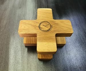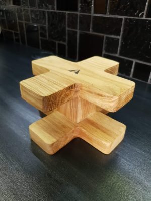 Stojak może być wykonany z drewna dębowego w dwóch wariantach kolorystycznych – naturalnym i podpalanym.